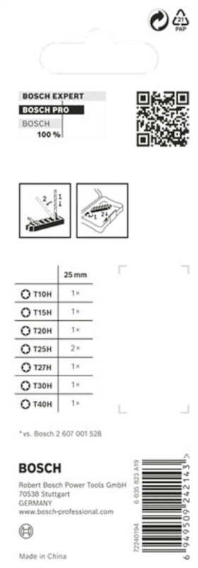 Bosch PRO Torx Security Impact Bit, T10H/T15H/T20H/T25H/T27H/T30H/T40H, 25mm, 8-tlg.