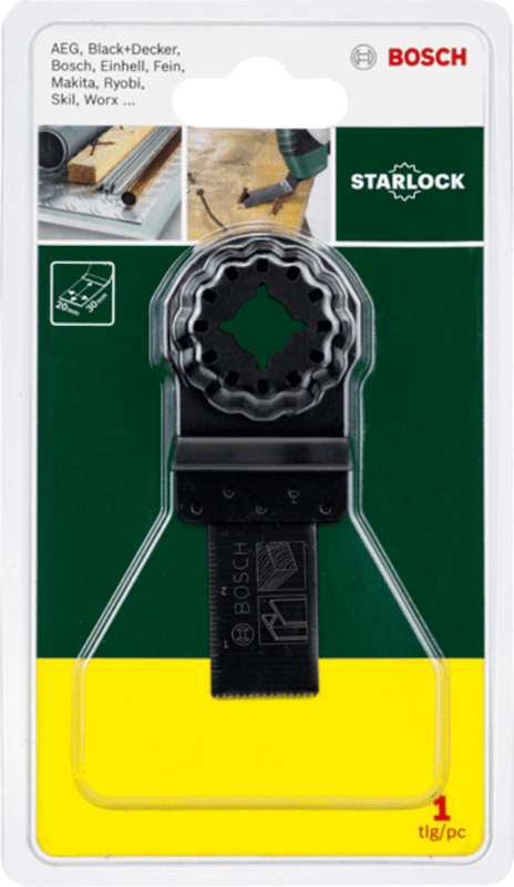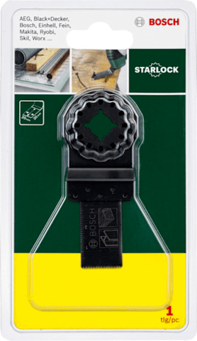 Starlock BIM Tauchsägeblatt Wood and Metal. Tauchschnitte in Holz, Metall und Gipskartonplatten. Aussparungen in Möbelelemente schneiden (z. B. um Zugang zu Steckdose zu ermöglichen). Holzbauteile (z.