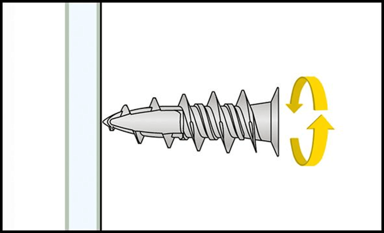 • Geeignet für die Befestigung in Gipskartonplatten und Gipsfaserplatte