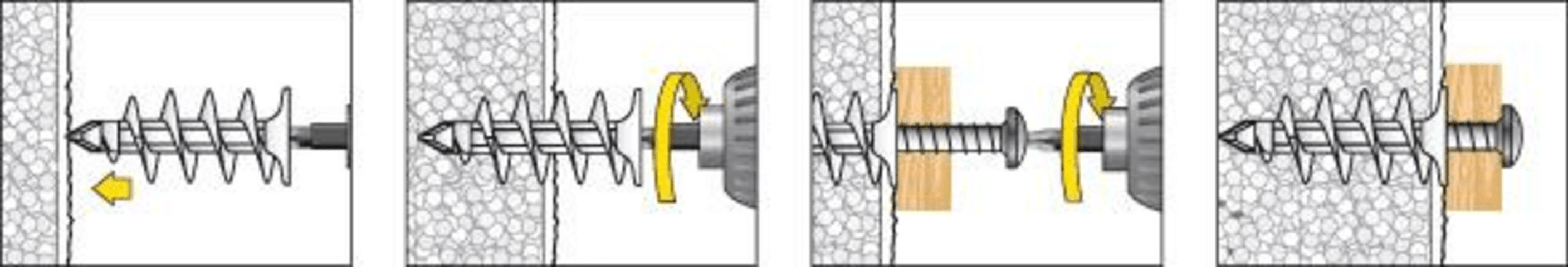 • Kein Vorbohren nötig aufgrund scharfer Schneidspitze – bohrt zuverlässig auch durch harten WDVS-Putz (= 7 mm