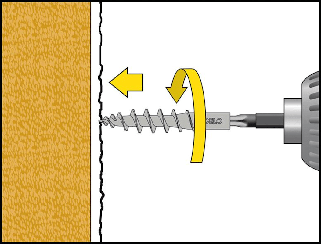 • Scharfe Bohrspitze für den Einsatz ohne Vorbohren (Putz = 7 mm)
