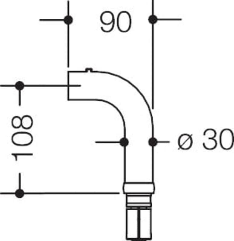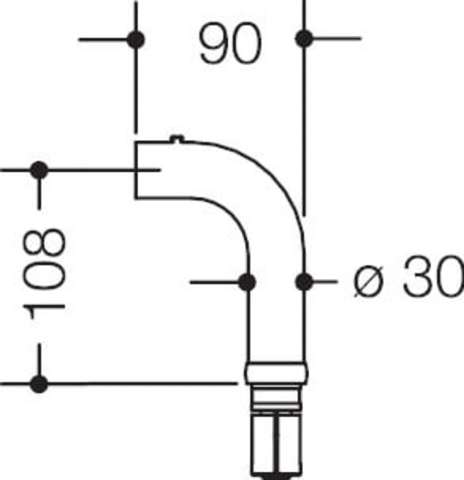 HEWI, Objekttür-Stütze, Ausführung: schräg, DIN-Richtung: DIN Links-Rechts, Modellnummer: 111XA30K1.A, Ergänzung: Bogen, 90°, mit Verbindungsansatz, mit Befestigungsansatz, Material: Edelstahl, Farbton: edelstahl, Oberfläche: geschliffen, Höhe: 90 mm, Durchmesser: 30 mm, Türwerkstoff: Holz, Stahl, Kunststoff, Metall, Zulassung: entsprechende Standard Zulassung