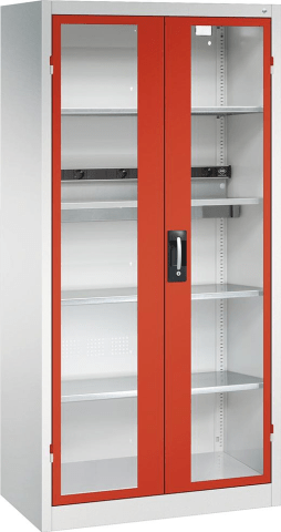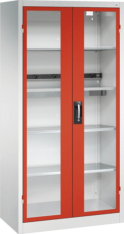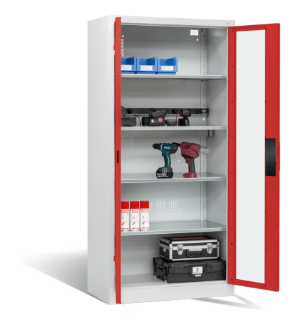 Akku-Ladeschrank BASIC, mit Sichtfenstertüren• Stabile Stahlkonstruktion • Mit hochwertiger Einbrennbeschichtung • Türen: in außenliegenden Scharnieren, 180° Türöffnungswinkel • Sichtfenster aus Ac