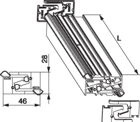 Packung Dichtungsschiene breit HS in Alu 28 senk und waagerecht mit Verhakung L=2.500mm silber EV1