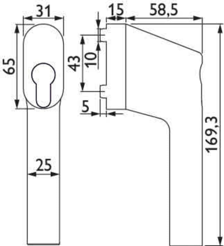 Drehkipp-Rasterolive 1802 DKI PZ, 2 Stifte zum Einschlagen für 36/42 mm vorstehend, ohne Halbzylinder / 2 Schrauben M5 x 45 mm, vorgerichtet für Halbz. 30mm mit 8 fach verstellb., Oberfl. 60 (Edelstah
