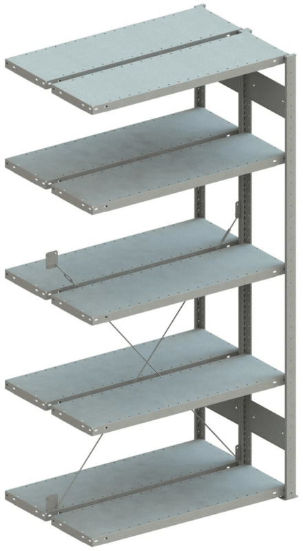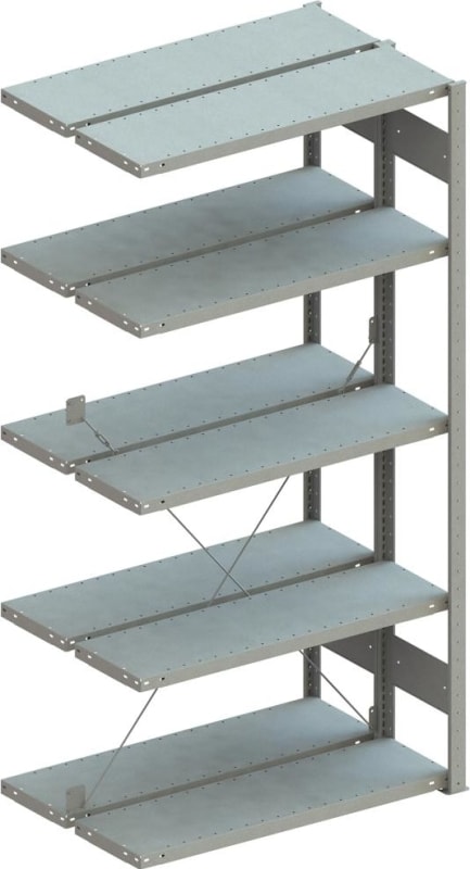 Steckregal META CLIP, Fachlast 230 kg, doppelseitig, verzinkt • Oberfläche: sendzimirverzinkt • Regalrahmen: vorgefertigte, komplett geclinchte • Raster Höhenverstellung: 25 mm • Aussteifung: Kreuzst