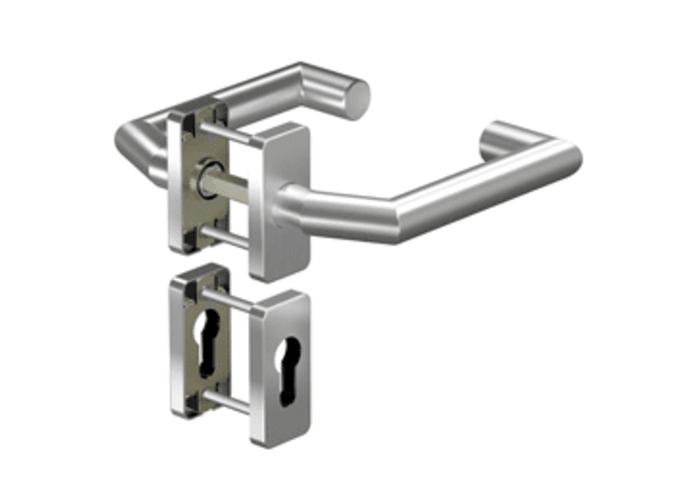 OGRO Drückergarnitur 8907V/6610SR; Produkttyp: Drückergarnitur; Produkttyp (Hersteller): Drückergarnitur; Ausführung: Rosette; Befestigungsart Drückerrosette (außen): verdeckt verschraubt; Befestigung
