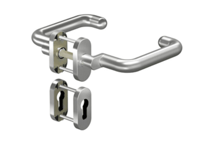 OGRO Drückergarnitur 8101A/6620SR; Produkttyp: Drückergarnitur; Produkttyp (Hersteller): Drückergarnitur; Ausführung: Rosette; Befestigungsart Drückerrosette (außen): verdeckt verschraubt; Befestigung