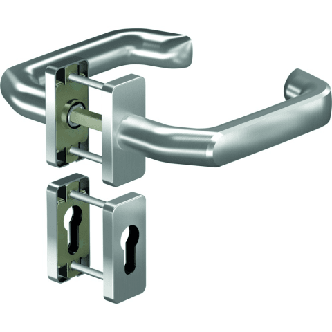 OGRO Drückergarnitur 8116V/6620SR; Produkttyp: Drückergarnitur; Produkttyp (Hersteller): Drückergarnitur; Ausführung: Rosette; Befestigungsart Drückerrosette (außen): verdeckt verschraubt; Befestigung