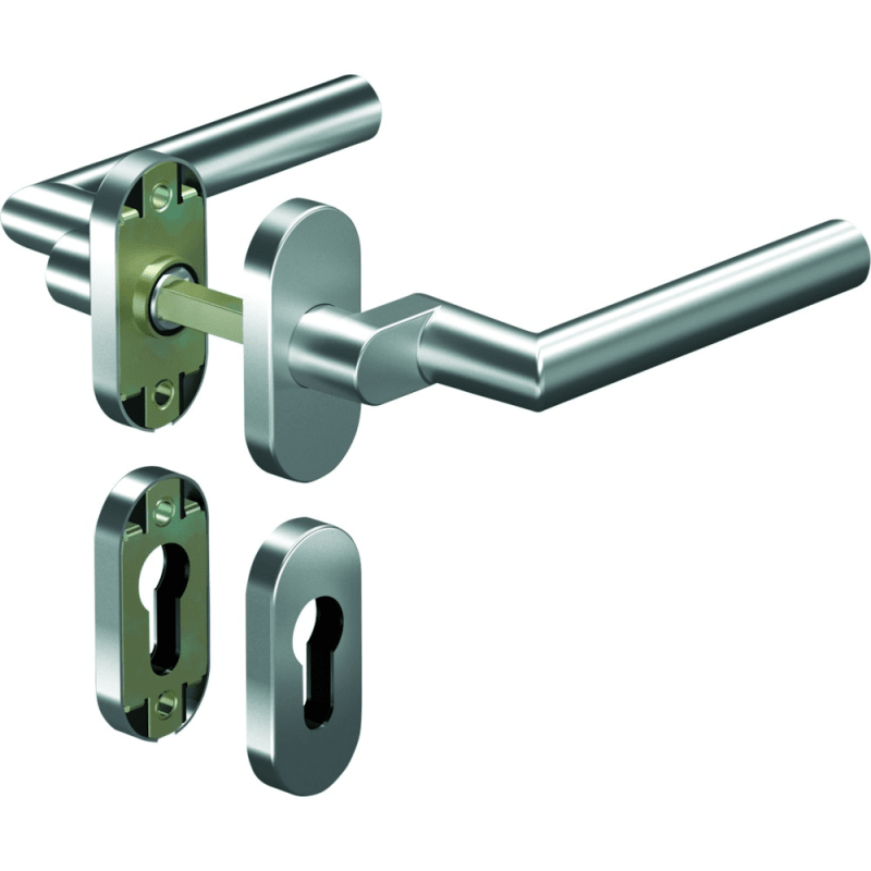 OGRO Drückergarnitur Premium 8906A/6621; Produkttyp: Drückergarnitur; Produkttyp (Hersteller): Drückergarnitur; Ausführung: Rosette; Befestigungsart Drückerrosette (außen): verdeckt verschraubt; Befes