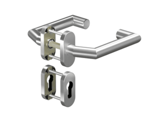OGRO Drückergarnitur 8907V/6621SR; Produkttyp: Drückergarnitur; Produkttyp (Hersteller): Drückergarnitur; Ausführung: Rosette; Befestigungsart Drückerrosette (außen): verdeckt verschraubt; Befestigung