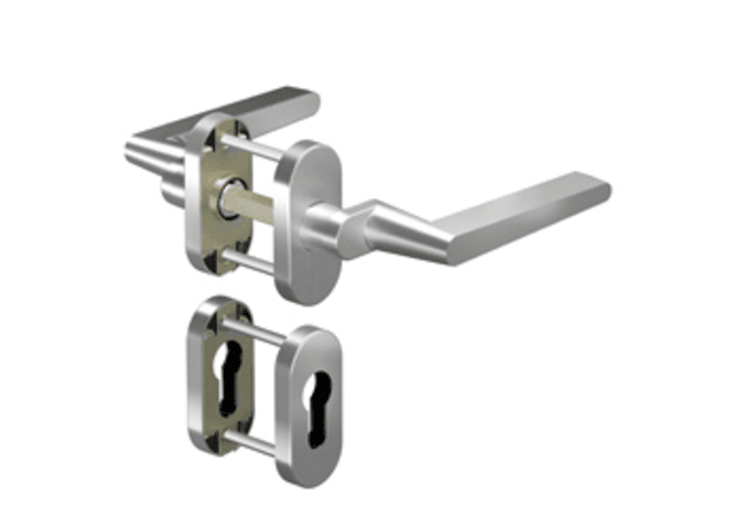 OGRO Drückergarnitur 8972A/6620SR; Produkttyp: Drückergarnitur; Produkttyp (Hersteller): Drückergarnitur; Ausführung: Rosette; Befestigungsart Drückerrosette (außen): verdeckt verschraubt; Befestigung