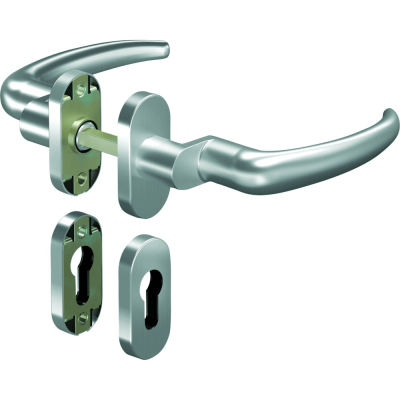 OGRO Drückergarnitur Premium 8998/6621; Produkttyp: Drückergarnitur; Produkttyp (Hersteller): Drückergarnitur; Ausführung: Rosette; Befestigungsart Drückerrosette (außen): verdeckt verschraubt; Befest