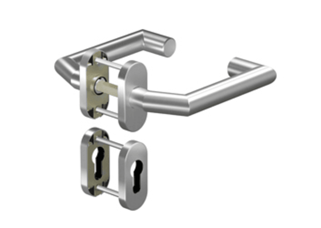 OGRO Drückergarnitur 8907V/6621SR FS; Produkttyp: Drückergarnitur; Produkttyp (Hersteller): Drückergarnitur; Ausführung: Rosette; Befestigungsart Drückerrosette (außen): verdeckt verschraubt; Befestig