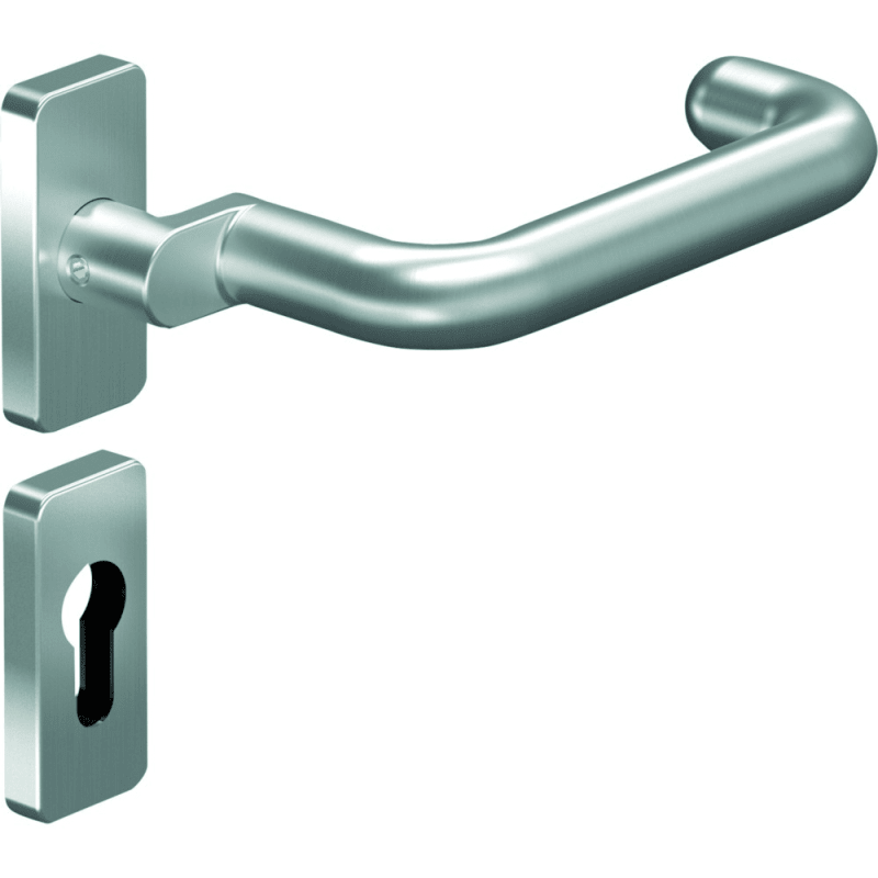 OGRO Drücker-Halbgarnitur Premium 8101A/6610/6676; Material: Aluminium; Befestigungsart: verdeckt verschraubt; Befestigungstechnik: ohne Stütznocken; Abdeckung: mit Rosetten; Form: eckig; Benutzerklas