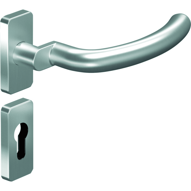 OGRO Drücker-Halbgarnitur Premium 8141A/6610/6676; Material: Edelstahl; Befestigungsart: verdeckt verschraubt; Befestigungstechnik: ohne Stütznocken; Abdeckung: mit Rosetten; Form: eckig; Benutzerklas