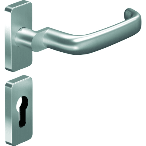 OGRO Drücker-Halbgarnitur Premium 8527A/6610/6676; Material: Edelstahl; Befestigungsart: verdeckt verschraubt; Befestigungstechnik: ohne Stütznocken; Abdeckung: mit Rosetten; Form: eckig; Benutzerklas
