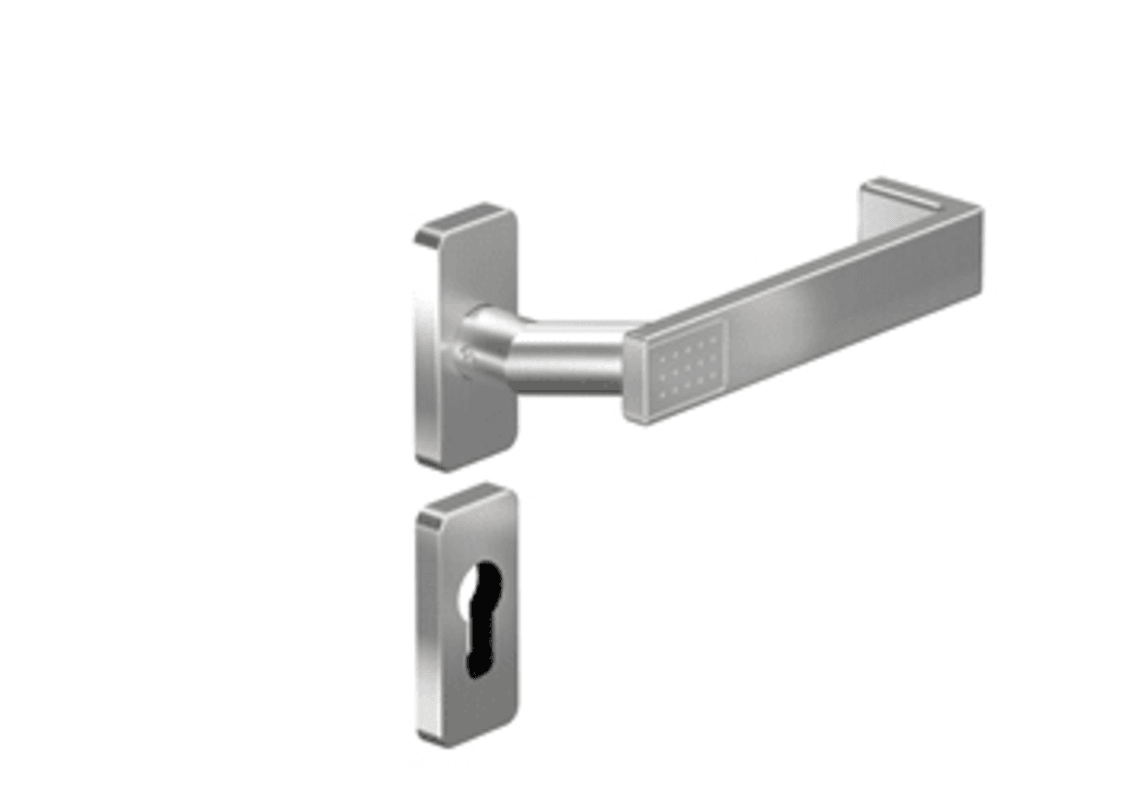 OGRO Drücker-Halbgarnitur 8871V/6610SR; Material: Edelstahl; Befestigungsart: verdeckt verschraubt; Befestigungstechnik: ohne Stütznocken; Abdeckung: mit Rosetten; Form: eckig; Benutzerklasse: Klasse
