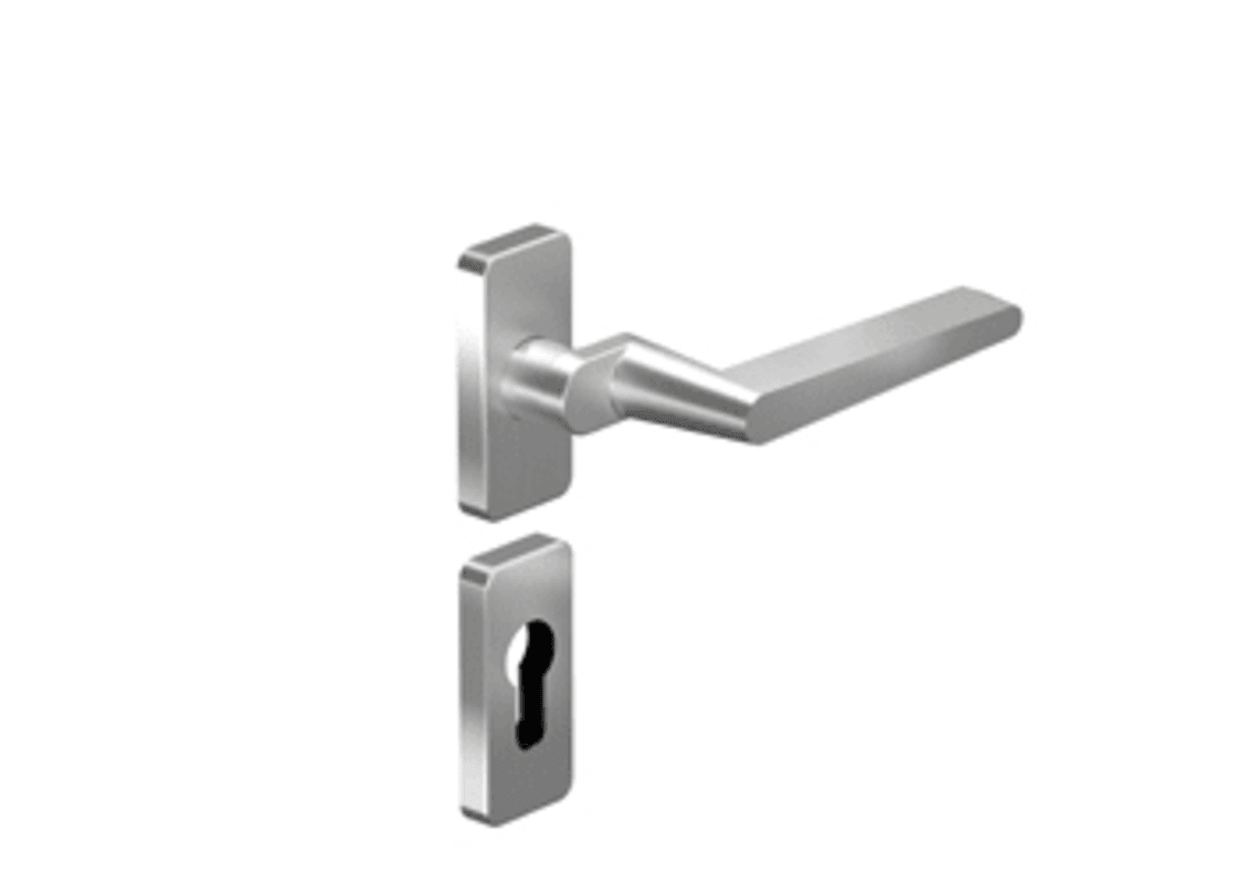 OGRO Drücker-Halbgarnitur 8972A/6611SR; Material: Edelstahl; Befestigungsart: verdeckt verschraubt; Befestigungstechnik: ohne Stütznocken; Abdeckung: mit Rosetten; Form: eckig; Benutzerklasse: Klasse