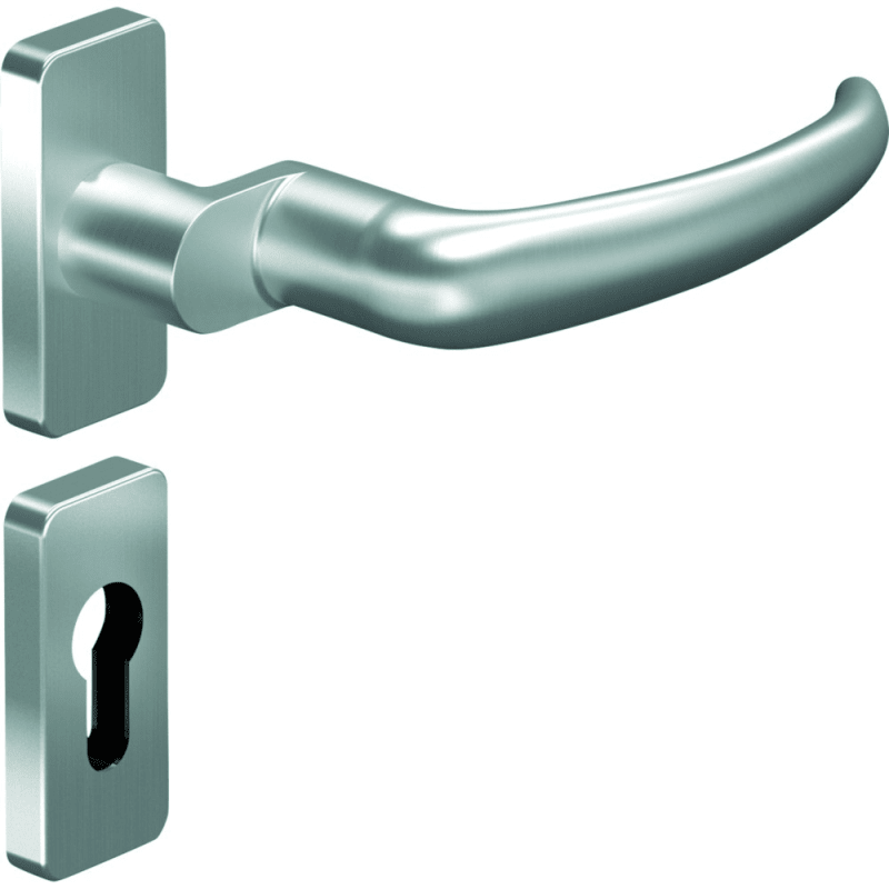OGRO Drücker-Halbgarnitur Premium 8998A/6611/6676; Material: Edelstahl; Befestigungsart: verdeckt verschraubt; Befestigungstechnik: ohne Stütznocken; Abdeckung: mit Rosetten; Form: eckig; Benutzerklasse: Klasse 4; Stärke Abdeckung: 9 mm; Einsatzbereich: Profiltür; Basis: Drücker-Halbgarnitur; Lochung: Profilzylinder gelocht; Vierkant: 8 mm; Befestigungssystem: Stiftverbindung; DIN-Richtung: DIN Links-Rechts; Lagerung: festdrehbar mit Hochhaltemechanik,Gleitlager; Breite: 31 mm; Länge: 69 mm; Oberfläche: satino; Farbton: edelstahl; Norm: DIN EN 1906; Türart: Außentüren,Rahmentüren; Drückerbefestigung: Vollstift; Anschlagrichtung: Drücker rechts/links verwendbar; Türwerkstoff: Aluminium,Kunststoff; Drückerform: versetzt,gebogen