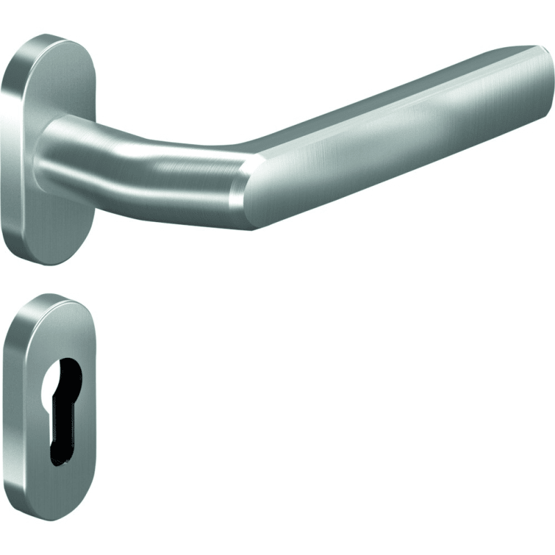 OGRO Drücker-Halbgarnitur 8115V/6610SR FS; Material: Edelstahl; Befestigungsart: verdeckt verschraubt; Befestigungstechnik: ohne Stütznocken; Abdeckung: mit Rosetten; Form: eckig; Benutzerklasse: Klas