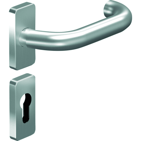 OGRO Drücker-Halbgarnitur Premium 8350V/6610/6676 FS; Material: Edelstahl; Befestigungsart: verdeckt verschraubt; Befestigungstechnik: ohne Stütznocken; Abdeckung: mit Rosetten; Form: eckig; Benutzerk