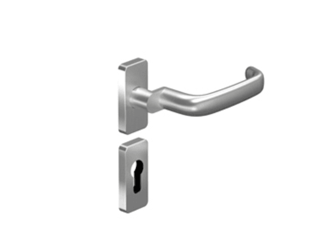 OGRO Drücker-Halbgarnitur 8527A/6610SR FS; Material: Aluminium; Befestigungsart: verdeckt verschraubt; Befestigungstechnik: ohne Stütznocken; Abdeckung: mit Rosetten; Form: eckig; Benutzerklasse: Klasse 4; Stärke Abdeckung: 9 mm; Einsatzbereich: Feuerhemmend; Basis: Drücker-Halbgarnitur; Lochung: Profilzylinder gelocht; Vierkant: 9 mm; Befestigungssystem: Stiftverbindung; Zulassung: für Feuerschutz,für Rauchschutz; DIN-Richtung: DIN Links-Rechts; Lagerung: Gleitlager,festdrehbar; Breite: 31 mm; Länge: 69 mm; Oberfläche: satino; Farbton: naturfarbig; Norm: DIN EN 1906,DIN 18273; Türart: Außentüren,Rahmentüren; Drückerbefestigung: Vollstift; Anschlagrichtung: Drücker rechts/links verwendbar; Türwerkstoff: Aluminium,Kunststoff; Technik: Click&Go Technik; Drückerform: versetzt,gebogen