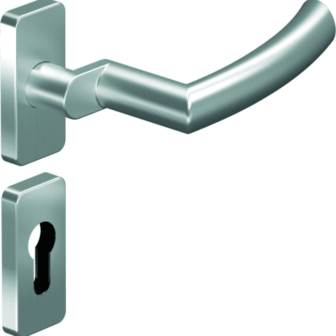 OGRO Drücker-Halbgarnitur Premium 8940A/6610/6676 FS; Material: Edelstahl; Befestigungsart: verdeckt verschraubt; Befestigungstechnik: ohne Stütznocken; Abdeckung: mit Rosetten; Form: eckig; Benutzerklasse: Klasse 4; Stärke Abdeckung: 9 mm; Einsatzbereich: Feuerhemmend; Basis: Drücker-Halbgarnitur; Lochung: Profilzylinder gelocht; Vierkant: 9 mm; Befestigungssystem: Stiftverbindung; Zulassung: für Feuerschutz,für Rauchschutz; DIN-Richtung: DIN Links-Rechts; Lagerung: Gleitlager,festdrehbar; Breite: 31 mm; Länge: 69 mm; Oberfläche: satino; Farbton: edelstahl; Norm: DIN 18273,DIN EN 1906; Türart: Außentüren,Rahmentüren; Drückerbefestigung: Vollstift; Anschlagrichtung: Drücker rechts/links verwendbar; Türwerkstoff: Aluminium,Kunststoff; Drückerform: versetzt,gebogen