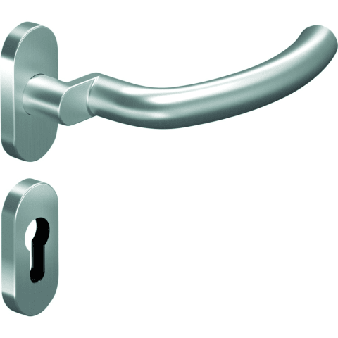 OGRO Drücker-Halbgarnitur Premium 8140A/6620/6679; Material: Edelstahl; Befestigungsart: verdeckt verschraubt; Befestigungstechnik: ohne Stütznocken; Abdeckung: mit Rosetten; Form: oval; Benutzerklass
