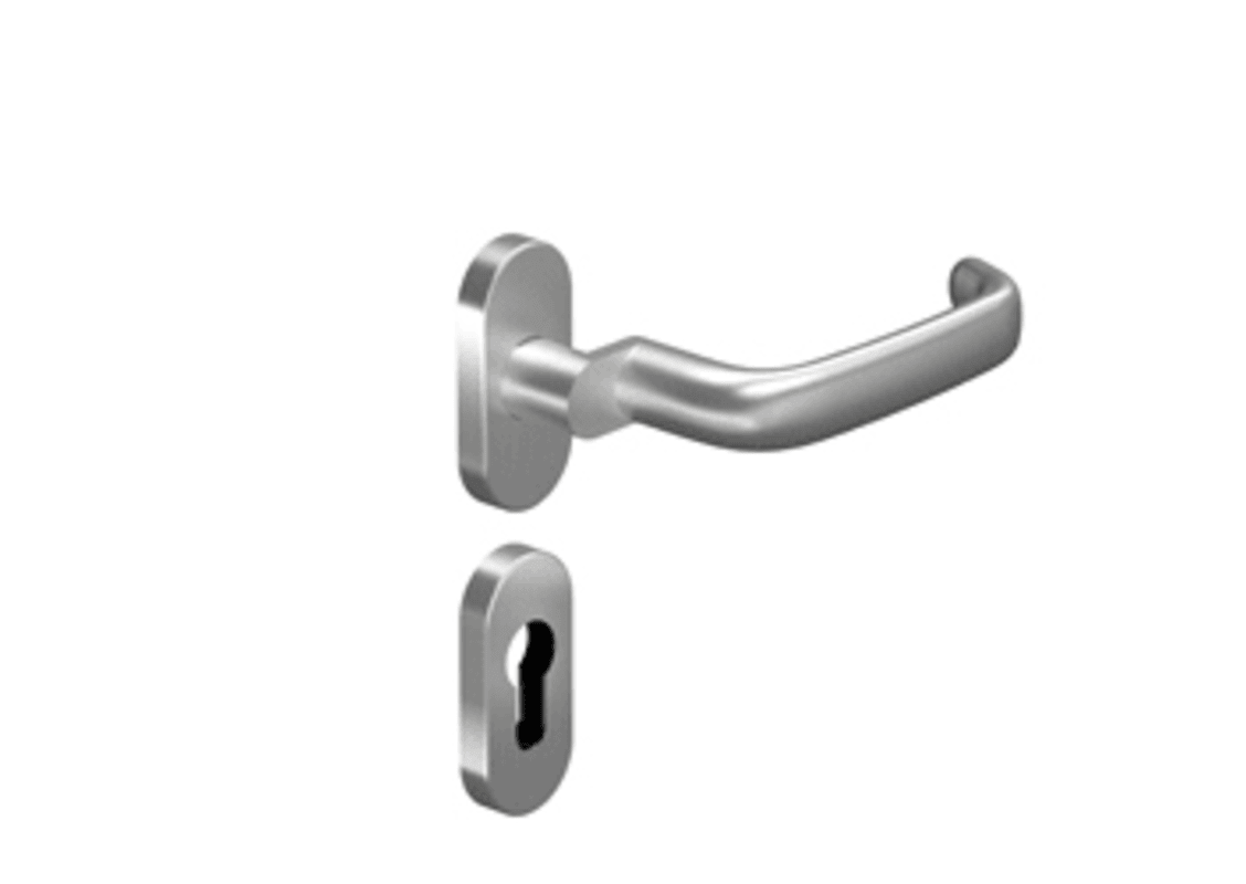 OGRO Drücker-Halbgarnitur 8527A/6621SR; Material: Aluminium; Befestigungsart: verdeckt verschraubt; Befestigungstechnik: ohne Stütznocken; Abdeckung: mit Rosetten; Form: oval; Benutzerklasse: Klasse 4