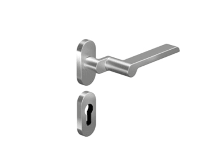 OGRO Drücker-Halbgarnitur 8530A/6620SR; Material: Edelstahl; Befestigungsart: verdeckt verschraubt; Befestigungstechnik: ohne Stütznocken; Abdeckung: mit Rosetten; Form: oval; Benutzerklasse: Klasse 4; Stärke Abdeckung: 9 mm; Einsatzbereich: Profiltür; Basis: Drücker-Halbgarnitur; Lochung: Profilzylinder gelocht; Vierkant: 8 mm; Befestigungssystem: Stiftverbindung; DIN-Richtung: DIN Links-Rechts; Lagerung: Gleitlager,festdrehbar; Breite: 31 mm; Länge: 69 mm; Oberfläche: satino; Farbton: edelstahl; Norm: DIN EN 1906; Türart: Außentüren,Rahmentüren; Drückerbefestigung: Vollstift; Anschlagrichtung: Drücker rechts/links verwendbar; Türwerkstoff: Aluminium,Kunststoff; Drückerform: versetzt,gerade