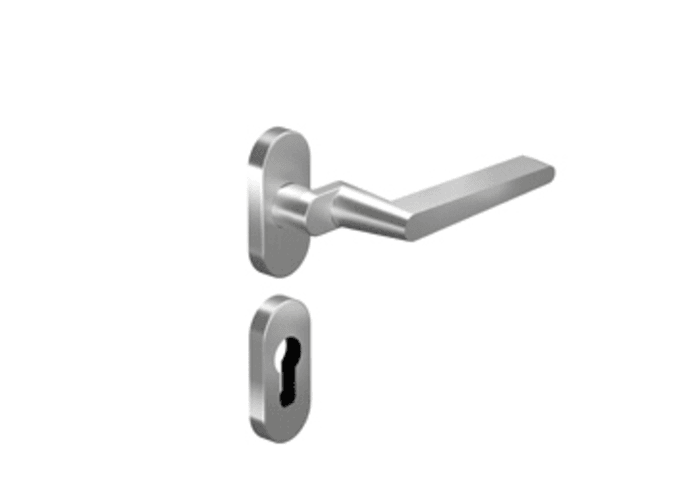 OGRO Drücker-Halbgarnitur 8972A/6620SR; Material: Edelstahl; Befestigungsart: verdeckt verschraubt; Befestigungstechnik: ohne Stütznocken; Abdeckung: mit Rosetten; Form: oval; Benutzerklasse: Klasse 4; Stärke Abdeckung: 9 mm; Einsatzbereich: Profiltür; Basis: Drücker-Halbgarnitur; Lochung: Profilzylinder gelocht; Vierkant: 8 mm; Befestigungssystem: Stiftverbindung; DIN-Richtung: DIN Links-Rechts; Lagerung: festdrehbar,Gleitlager; Breite: 31 mm; Länge: 69 mm; Oberfläche: satino; Farbton: edelstahl; Norm: DIN EN 1906; Türart: Außentüren,Rahmentüren; Drückerbefestigung: Vollstift; Anschlagrichtung: Drücker rechts/links verwendbar; Türwerkstoff: Aluminium,Kunststoff; Technik: Click&Go Technik; Drückerform: versetzt,gerade