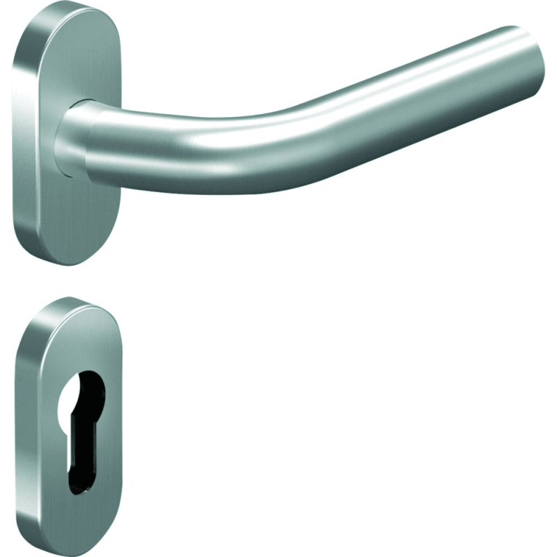 OGRO Drücker-Halbgarnitur Premium 8155V/6621/6679 FS; Material: Edelstahl; Befestigungsart: verdeckt verschraubt; Befestigungstechnik: ohne Stütznocken; Abdeckung: mit Rosetten; Form: oval; Benutzerkl
