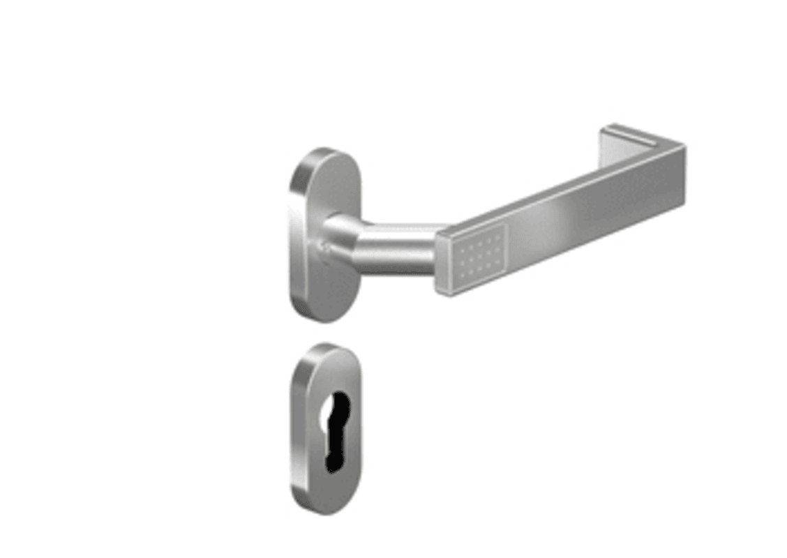 OGRO Drücker-Halbgarnitur 8871V/6621SR FS; Material: Edelstahl; Befestigungsart: verdeckt verschraubt; Befestigungstechnik: ohne Stütznocken; Abdeckung: mit Rosetten; Form: oval; Benutzerklasse: Klass