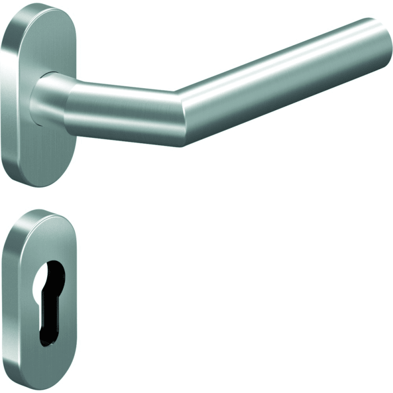 OGRO Drücker-Halbgarnitur Premium 8906V/6620/6679 FS; Material: Edelstahl; Befestigungsart: verdeckt verschraubt; Befestigungstechnik: ohne Stütznocken; Abdeckung: mit Rosetten; Form: oval; Benutzerkl