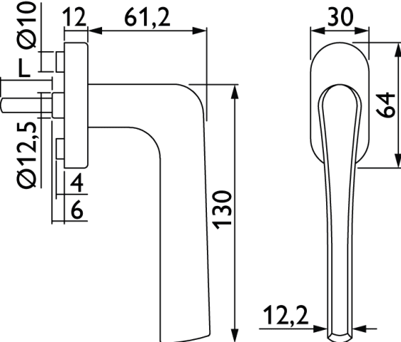 Drehkipp-Rasterolive 1005 BIC DK STAY, Stiftlänge ca. 35 mm vorstehend, Oberfl. 63 (Edelstahl poliert/Edelstahl matt)