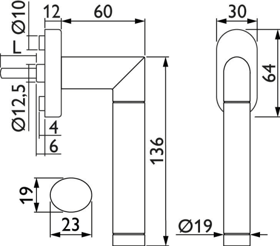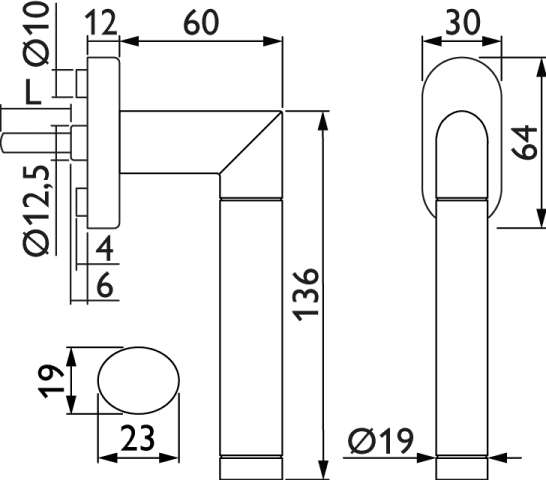 Drehkipp-Rasterolive 1356 BIC DK WIND, Sitftlänge ca. 31 mm vorstehend, Oberfl. 63 (Edelstahl poliert/Edelstahl matt)