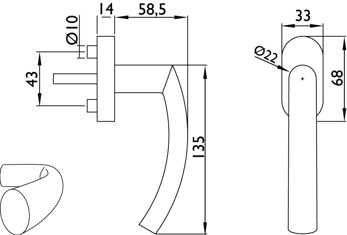 Drehkipp-Rasterolive 1807 DK BASIC 07, Sitftlänge ca. 40 mm vorstehend, Oberfl. 60 (Edelstahl matt)