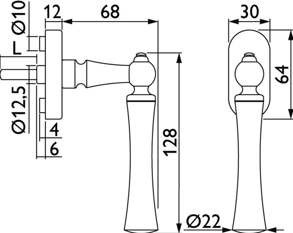 Hermat Fenstergriff VENEZIA 1149/DK,Stand.,ov.,7/35,gl. verchr.