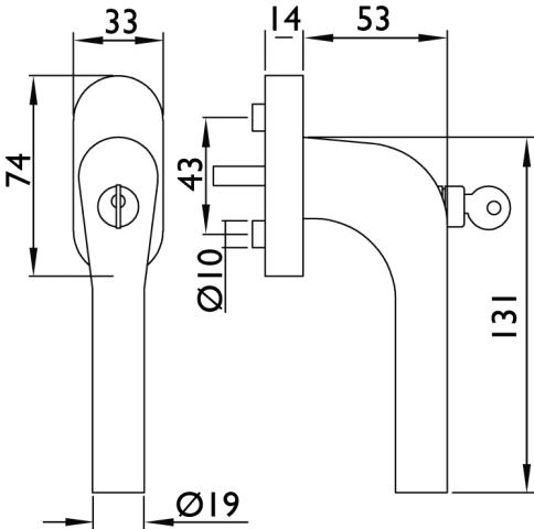 Drehkipp-Rasterolive 1803 DKI BASIC 03, Stiftlänge 24/31 + 36/42 mm vorstehend, Druckzylinder E45 im Griffteil, Schrauben M5x50 mm, für einbruchhemmende Fenster nach DIN EN 1627, Oberfl. 60 (Edelstahl
