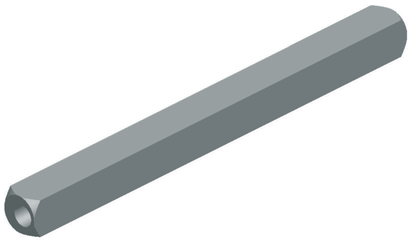 Drücker-Vierkant - Lochstift, Länge 8.5 x 100 mm, mit beidseitiger stirnseitiger Lochbohrung, Bohrung 35 mm tief, Eisen verzinkt