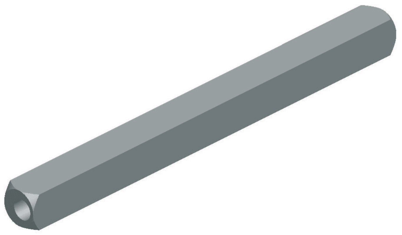 Drücker-Vierkant - Lochstift, Länge 8.5 x 120 mm, mit beidseitiger stirnseitiger Lochbohrung, Bohrung 35 mm tief, Eisen verzinkt