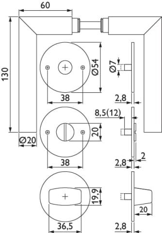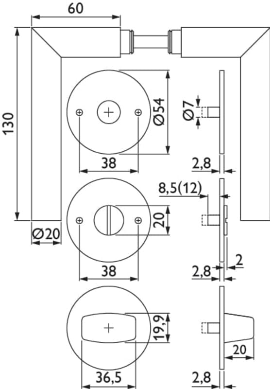 Hermat Drückergarnitur 1802/2636,Ros.,rd.,WC/S,8(8),ER pol.,TS 37-47