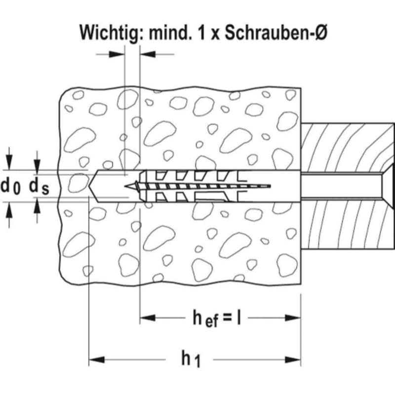 The flush-mounted dowel sleeve allows the dowel to be set deep under the plaster to the load-bearing substrate in order to achieve the maximum load-bearing capacity.