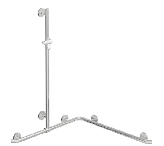 HEWI Dusch-, Wannenhandlauf mit Brausehalterstange WARM TOUCHsenkrecht und waagerecht angeordnete, im rechten Winkel verbundene Stangen mit Brausehalter, aus hochwertigem chromoptisch beschichtetem Po