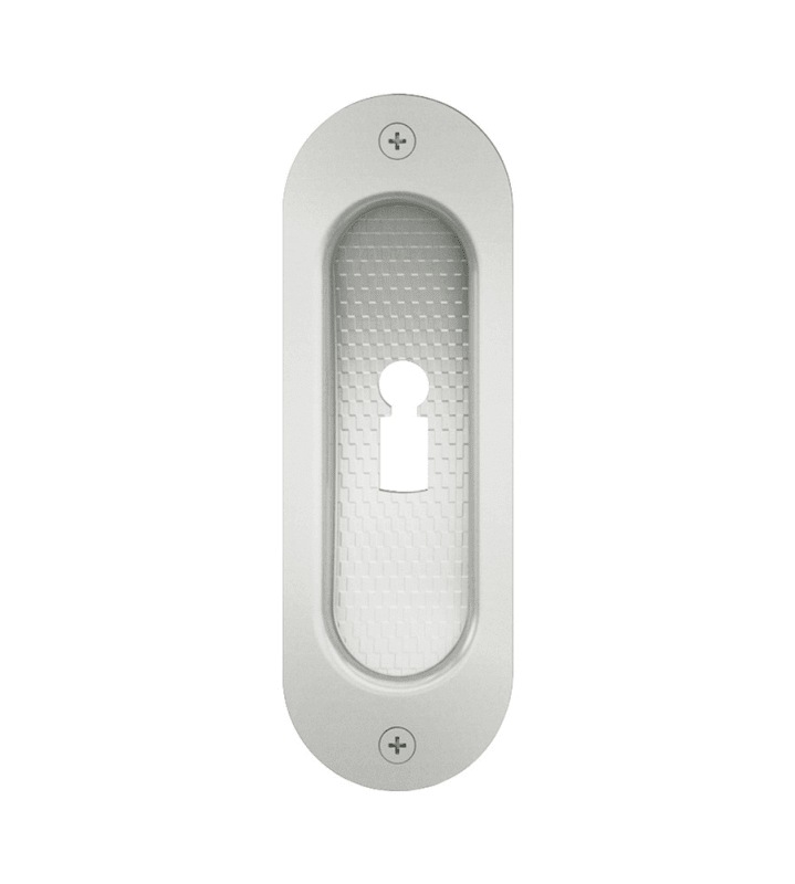 FSB, Zimmertür-Schiebetürmuschel, Modellnummer: 42 4212, Lochung: Buntbart gelocht, Form: oval, Material: Aluminium, Farbton: verkehrsweiß, Oberfläche: glanz, Befestigungsart: zum Einlassen, zum Ansch