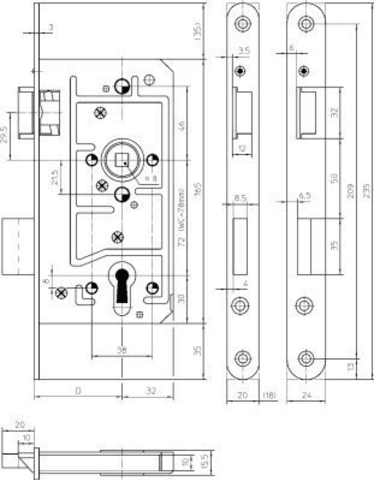 Objekt-Einsteckschloss Klasse 3 + 4 65-PZW/65-L-24-A-41