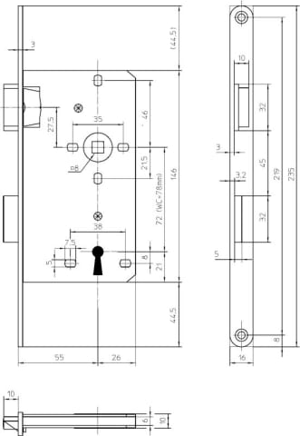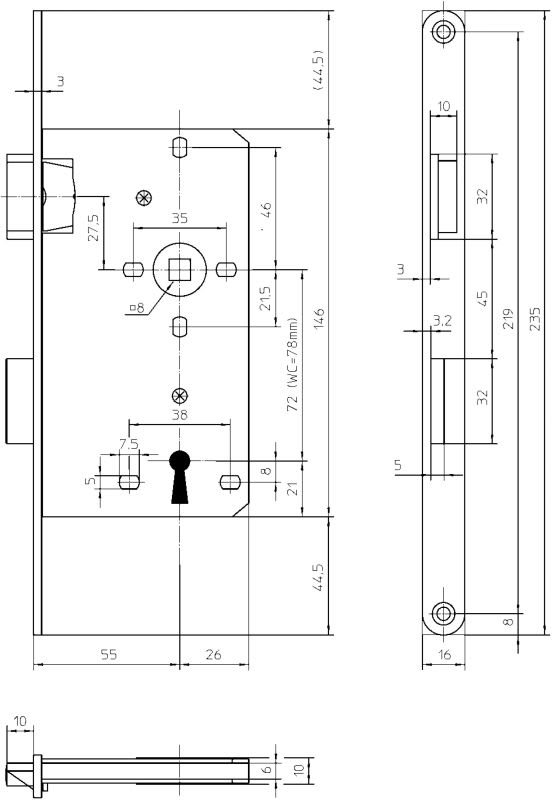 Einsteckschloss für Wohnungsinnen- und Abschlusstüren 106-1/2-WC/55-L-16-K-48