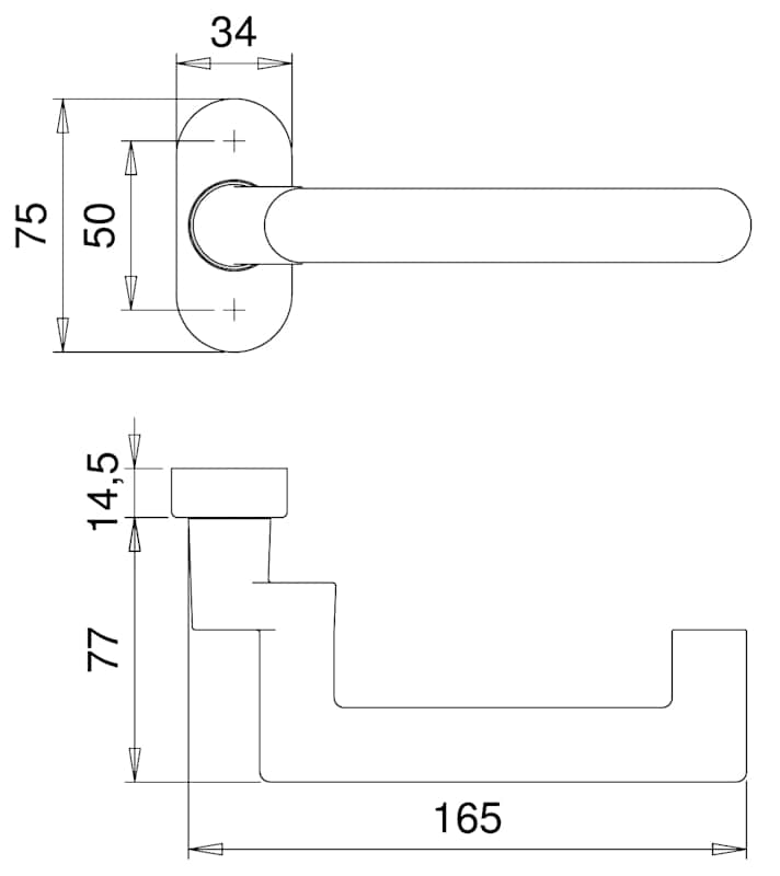 FH Halbgarnitur Ares 1460/2133, ohne Schlüsselrosette, oval, Vierkant 9mm ohne Stütznocken, naturfarben eloxiert