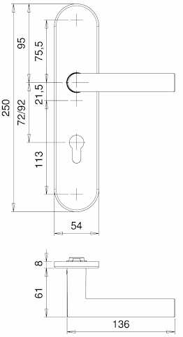 FH Vollblatt Sicherheits-Wechselgarnitur Delta FS 5737/0772,Langschild,ES 3,mit Zylinderabdeckung 72/9,DIN Links-Rechts,edelstahl matt,Türstärke39-48,rund/L-Form fest